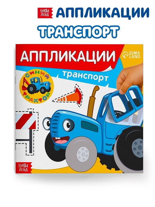 Аппликации "Транспорт", 16 стр, 19х19см, Синий трактор