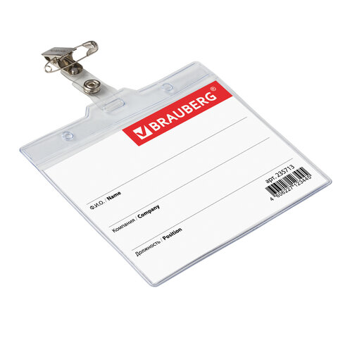 Бейдж горизонтальный БОЛЬШОЙ (90х120мм) , с клипсой и булавкой, мягкий BRAUBERG,