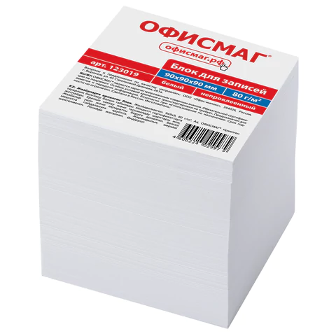 Блок высотой 9 см сложен из квадратных листов размером 9х9 см. Листы изготовлены из высококачественной офсетной бумаги плотностью 80 г/м2 и белизной 95-98%. Блок для записей подходит для письма любыми типами ручек и карандашей, листы благодаря высокой плотности не продавливаются при нажатии. Поставляется в плотной термоусадочной пленке, защищающей при транспортировке. Для повышения удобства рекомендуется использование в пластиковых подставках и настольных органайзерах.