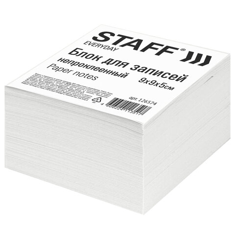 Блок для записей STAFF непроклеенный, куб 9*9*5 см, белый, белизна 70-80%