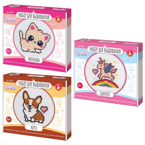 Набор для вышивания, с пяльцами, АССОРТИ, 10КОР