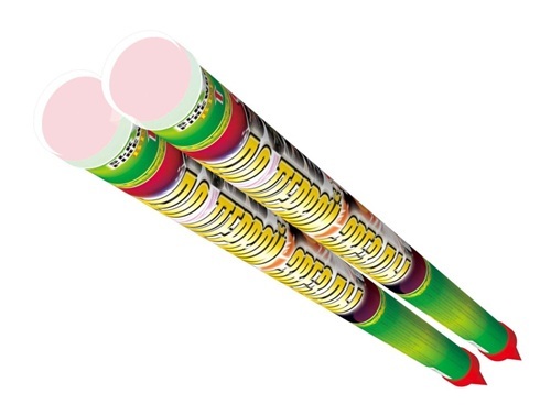 8 выстрелов с разрывом наверху. Эффект: красно-зеленый пион, белое мерцание, золотая ива с треском