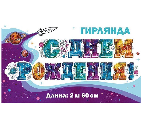 Гирлянда-буквы С днем рождения! Космос планеты 260 см