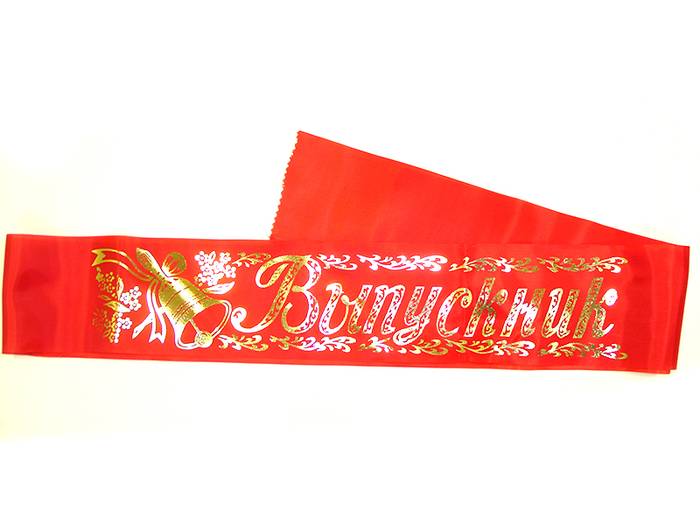 Для выпускников девочек и мальчиков детского сада. Лента красного цвета. Размер: длина - 1 м 80 см, ширина - 10 см. Материал: шелк, фольга
