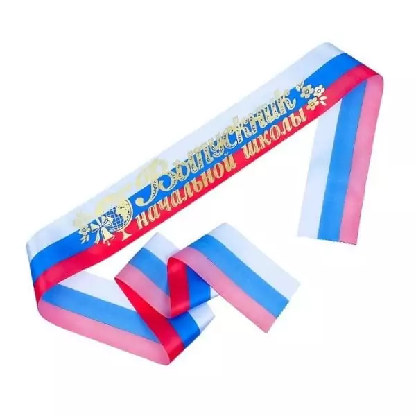 Для выпускников начальной школы. Набор из 10 лент для мальчиков и девочек, ленты триколор. Размер: длина - 1 м 70 см, ширина - 10 см