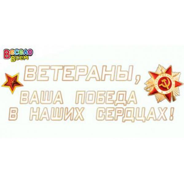 Набор наклеек с надписью "Ветераны, ваша победа в наших сердцах!" для декорирования помещения к празднованию Дня Победы - 9 мая!