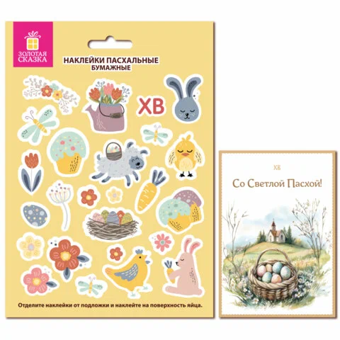 Наклейки 26 штук пасхальные для яиц 1 ЛИСТ 21x14,8см, + Открытка "Пасхальная радость"