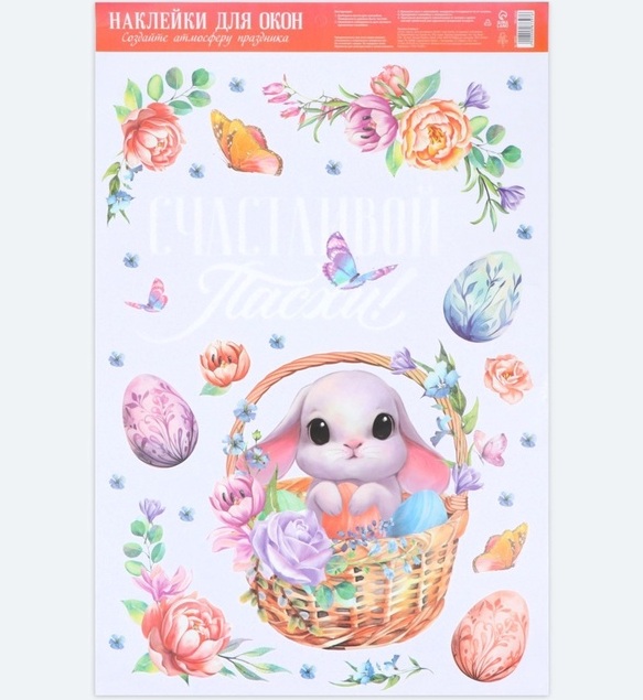 Наклейки витражные «Счастливой Пасхи!», 33×50.5 см