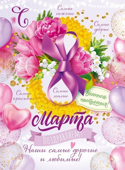 Плакат "С 8 марта поздравляем, наши самые дорогие и любимые!" 60х44 см