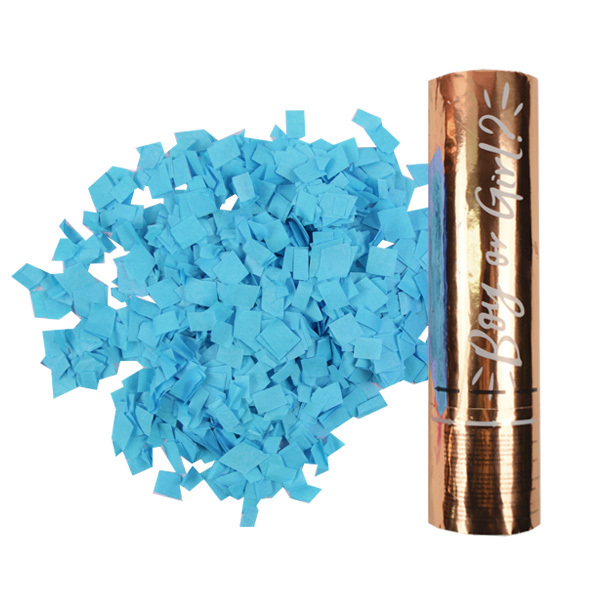 Наполнение: бумажное, голубое конфетти. АБСОЛЮТНО БЕЗОПАСНО! "Выстрел" производится энергией сжатого воздуха, находящегося в баллоне хлопушки, поэтому пневматические хлопушки абсолютно безопасны. Для вечеринки Gender reveal party, Baby shower.