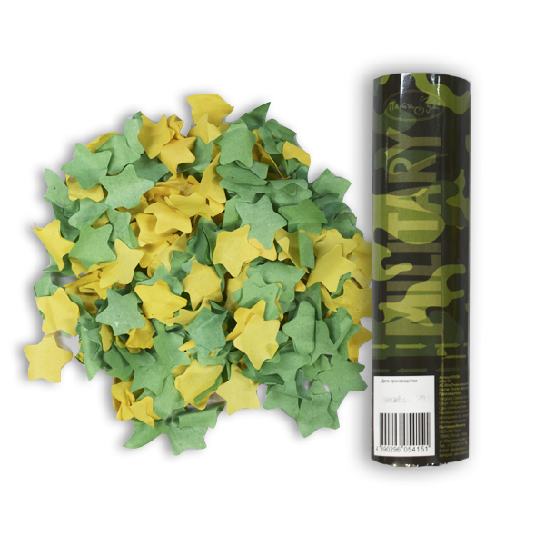 Наполнение: бумажное, милитари конфетти. АБСОЛЮТНО БЕЗОПАСНО! "Выстрел" производится энергией сжатого воздуха, находящегося в баллоне хлопушки, поэтому пневматические хлопушки абсолютно безопасны.