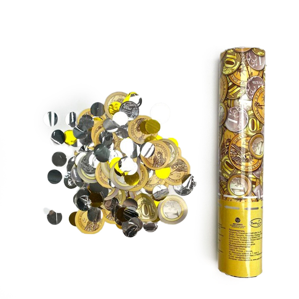 Наполнение: круглое конфетти и монеты.