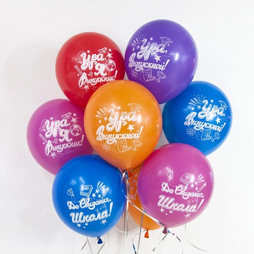 Воздушный шар До Свидания Школа Ура Выпускной 30см уже с гелием