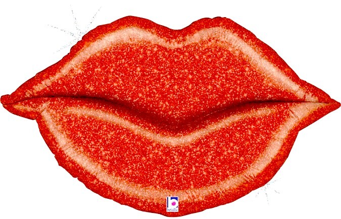 Шар фольга Фигура Губы, Красный, Голография 97 см УЖЕ с гелием