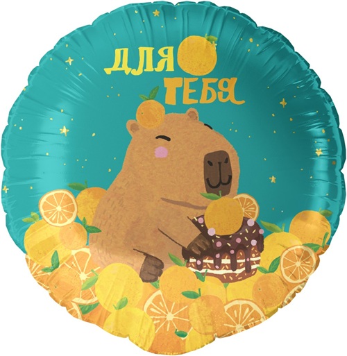 Шар фольга Круг Капибара 46см УЖЕ с гелием