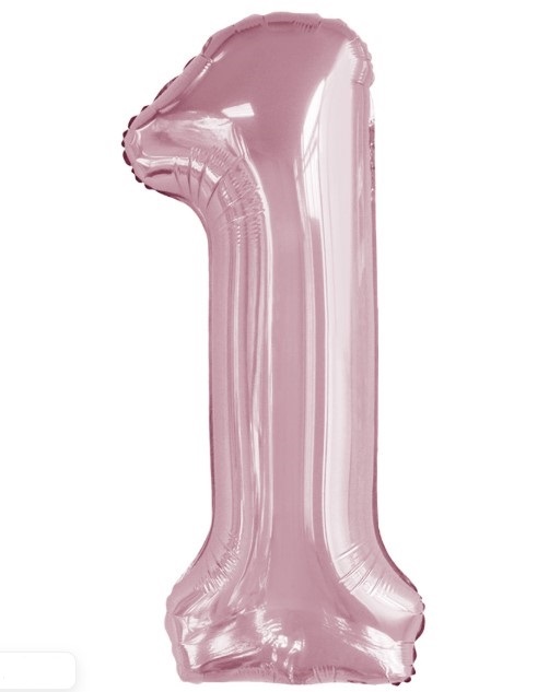 Шар фольга Цифра 1 Slim, Светло-розовый 86см УЖЕ с гелием