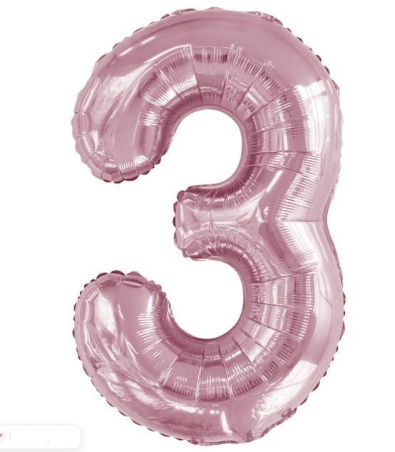 Шар фольга Цифра 3 Slim, Светло-розовый 86см УЖЕ с гелием