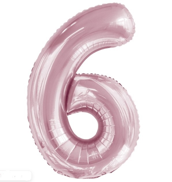 Шар фольга Цифра 6 Slim, Светло-розовый 86см УЖЕ с гелием