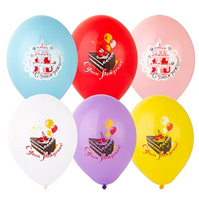 Воздушный Шар "С днем рождения 2 ст 3 цв шелк" 14"/36 см с гелием и обработкой Хай-флоат