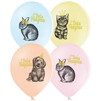 Воздушный Шар С ДР Домашние питомцы 2цв 36 см с гелием и обработкой Хай-флоат.