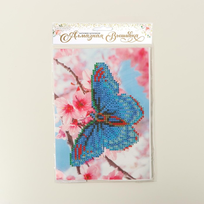 Алмазная мозаика с частичным заполнением на холсте «Бабочка», 15×21 см