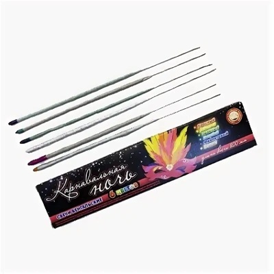 Свеча бенгальская 200 мм Карнавальная (6шт) крас, желт, зелен, голуб, бел, фиолет УПЗ. В наборе 6 штук. Цена указана за набор.