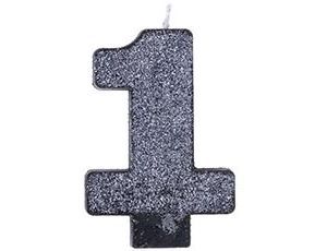 Декоративное украшение стола. Блестящая черная свеча в форме цифры "1". Отличное решение для декорирования торта, десерта ко дню рождения или юбилею. Высота свечи-цифры 8см.