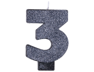 Декоративное украшение стола. Блестящая черная свеча в форме цифры "3". Отличное решение для декорирования торта, десерта ко дню рождения или юбилею. Высота свечи-цифры 8см.