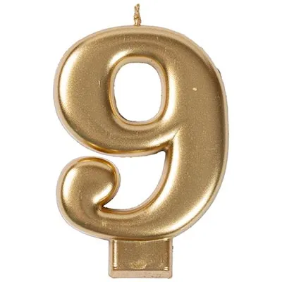 Декоративное украшение стола. Золотая Свеча в форме цифры "9". Отличное решение для декорирования торта, десерта ко дню рождения или юбилею.