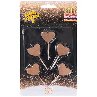 Декоративное украшение праздничного стола. Свечи в виде сердечек на пиках. Цвет розовое золото. Отличное решение для декорирования торта, десерта ко Дню Св. Валентина, Юбилею, Свадьбе, на романтический ужин. Стеарин, оригинальный дизайн.