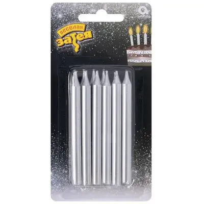 Декоративное украшение стола. В упаковке 12 серебряных свечей высотой 8см. Отличное решение для декорирования торта, десерта ко дню рождения или юбилею.