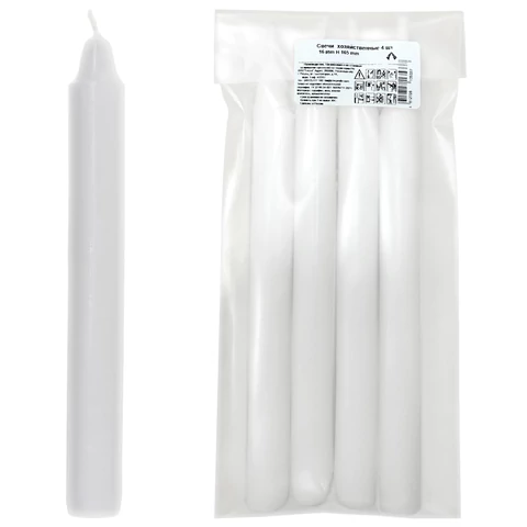Свечи хозяйственные, КОМПЛЕКТ 4 шт., диаметр 16 мм, высота 165 мм, 35337