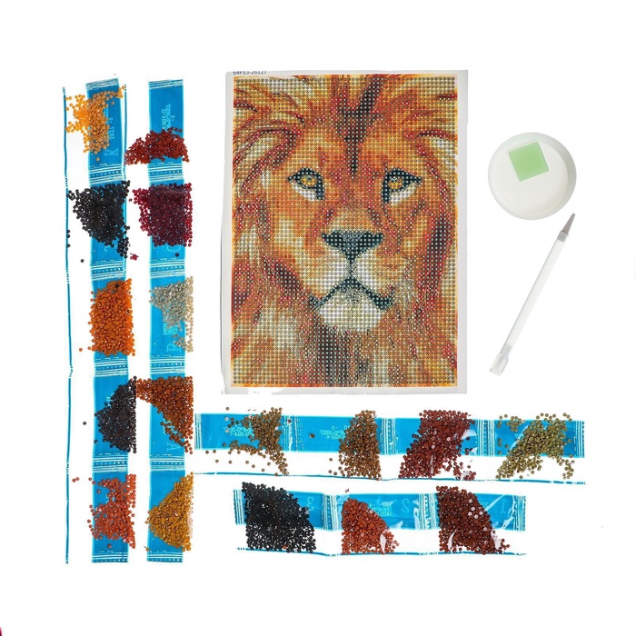 Алмазная вышивка с полным заполнением "Лев" 15*21 см, на холсте