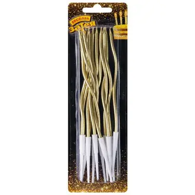 Свечи в виде тонких золотых спиралек с подставками, изящное украшение для Вашего торта. Главное, успеть загадать желание, глядя на искрящийся каскад свечей. В упаковке 12 штук высотой 13см.