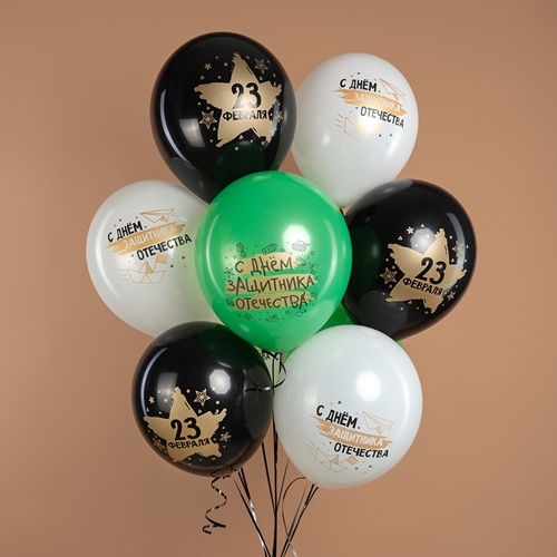 Воздушные шары "23 Февраля, С Днем Защитника!" 30 см с гелием и обработкой
