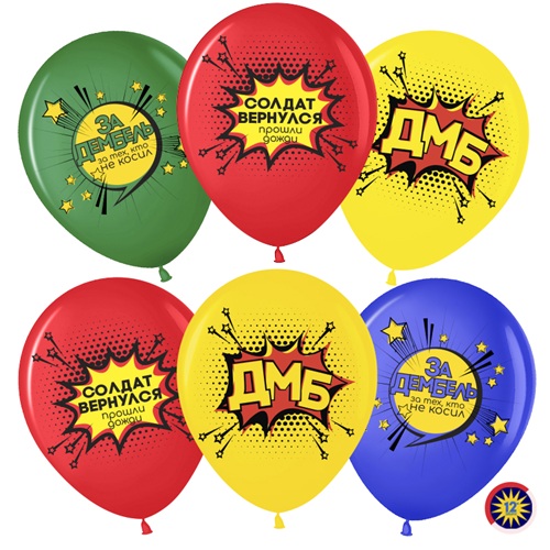 Воздушные шары Дембель, Ассорти, пастель, 2 ст 30см с гелием и обработкой Хай-флоат