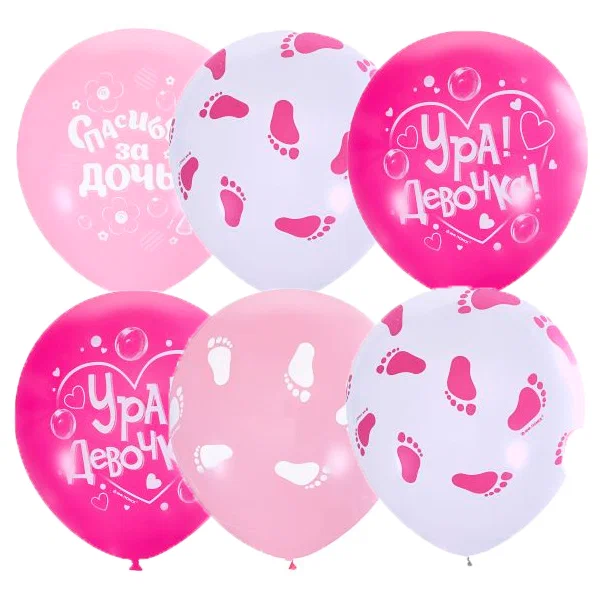 Воздушные шары К Рождению Девочки 30см с гелием и обработкой Хай-флоат для украшения выписки из роддома доченьки. Для декора комнаты на рождение малышки.