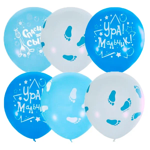 Воздушные шары К Рождению Мальчика 30см с гелием и обработкой Хай-флоат для украшения выписки из роддома сыночка. Для декора комнаты на рождение малыша.