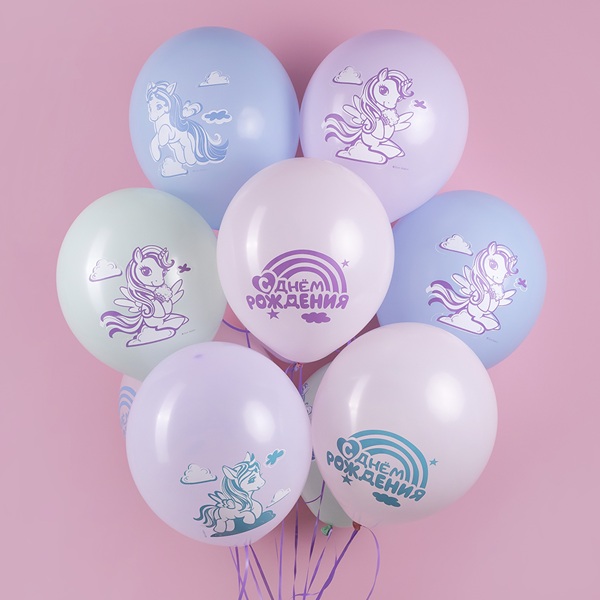 Воздушные шары Маленькие единороги пастель 30см с гелием и обработкой Хай-флоат