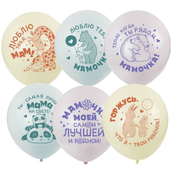 Воздушные шары "Мамочке" 12"/30см с гелием и обработкой Хай-флоат