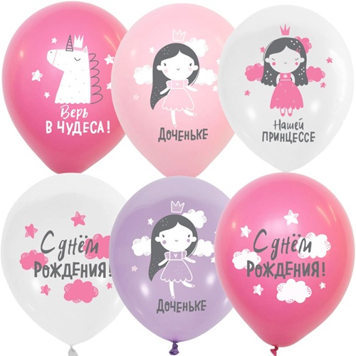 Воздушные шары С Днем Рождения Доченьке 2ст 30 см с гелием и обработкой Хай-флоат для украшения дня Рождения. Классический дизайн. Подходит для детского и взрослого дня Рождения.