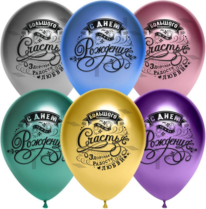 Воздушные шары С Днем Рождения! (винтаж) хром 30см с гелием и обработкой Хай-флоат. Для декора дня рождения.