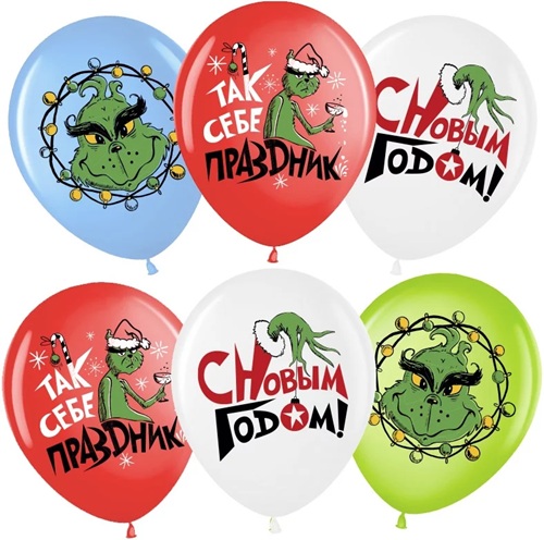 Воздушные шары С Новым Годом!, Ассорти, пастель, 1 ст, 30 см с гелием и обработкой