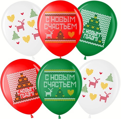 Воздушные шары С Новым Годом! (новогодний орнамент), Ассорти, пастель 30 см с гелием и обработкой