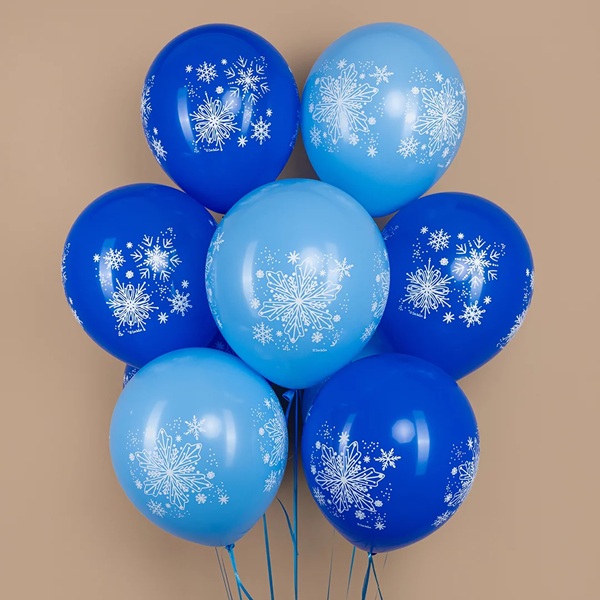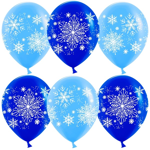 Воздушные шары Снежинки Искринки, Голубой/Синий, пастель 30 см с гелием и обработкой