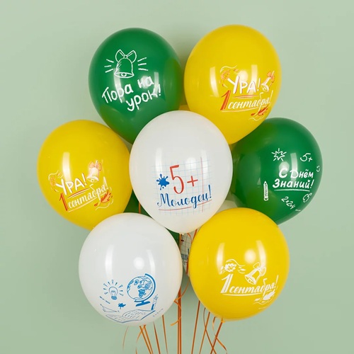 Воздушные шары Ура, 1 сентября 2 ст 30 см с гелием и обработкой Хай-флоат