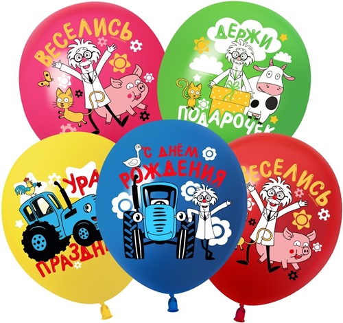 Воздушный шар Синий трактор С ДР ассорти 30 см с гелием и обработкой Хай-флоат