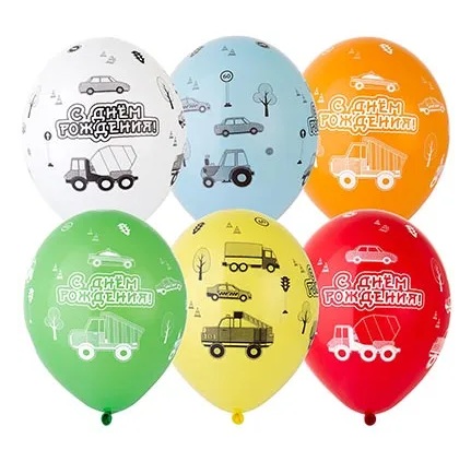 Воздушный шар С ДР Машинки 14"/36 см с гелием и обработкой HiFloat