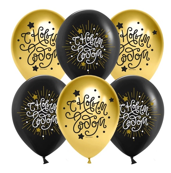 Воздушный шар С Новым Годом! Черный/Золото хром 30 см с гелием и обработкой Хай-флоат