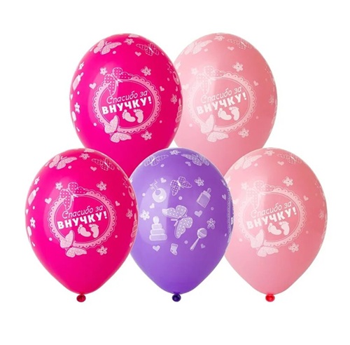 На выписку из роддома на рождение внучки. Шары надуты гелием и обработаны Hi-Float.